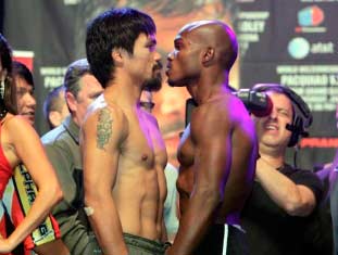Espero que gane Pacquiao y no le de chance alguna, asi tendrá que buscarse rivales de medio pelo y retirarse sin tanto bombos ni fiestas, ganando una bolsa mediocre en su ultimo combate.
