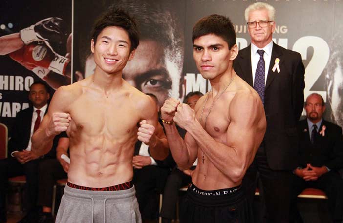 El japonés invicto soberano minimosca del WBC, el provinciano desde Kioto, Ken Shiro (10-0/5KOs) y su retador mexicano #1 WBC clasificado mundial minimosca y ex campeón mundial Pedro “Jibran” Guevara (30-2-1/17KOs) cumplieron el pesaje oficial con el mismo peso de 48.7 kilogramos, 200 gramos debajo del límite. Shiro va a hacer la primera defensa de su corona, que obtuvo en el pasado mayo en Tokio al imponerse por decisión al mexicano Ganigan “Maravilla” López.