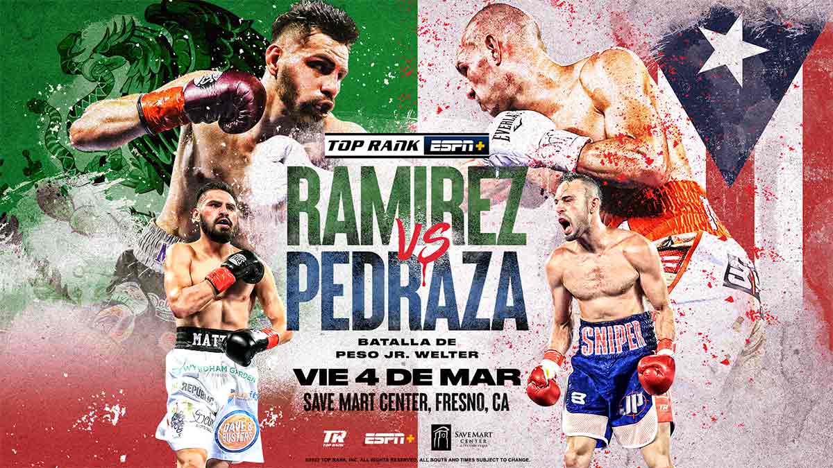 El choque eliminatorio Ramírez vs. Pedraza se transmitirán en vivo el 4 de marzo por ESPN+ desde el Save Mart Center en Fresno, CA